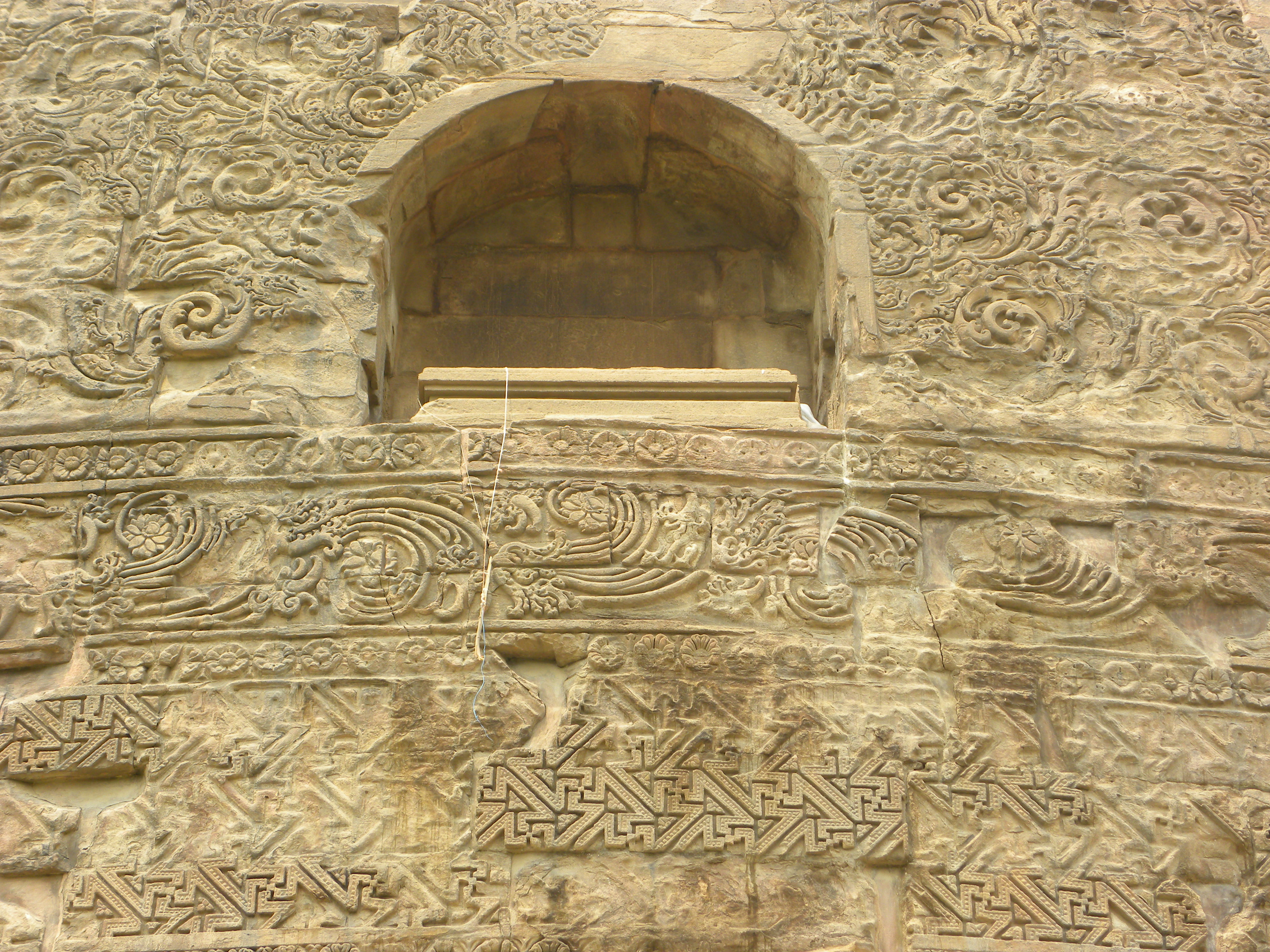 The next day I flagged down a Bajaj rickshaw and told the driver to take me to Sarnath. Cruising on these 3-wheelers – whether a tuk-tuk in Thailand or elsewhere – is always the same. You suck in alot of exhaust and hot thick air while dodging motorcycles, bikes, pedestrians, trucks, and cars. Once in a while, you get a driver that is drunk, whacked out, or just too eager to take you to some brothel. It’s usually fun in any situation though. The tricky part is having enough cash on you to pay the driver after you (hopefully) barter out the price in advance. The road to Sarnath was long and winding and we did have a bump with a motorcycle, but that was resolved with an apology and some pulling back of the bent parts into place. I was dropped off at the entrance to the archaeological site. I paid the entrance fee and walked into a green park which contained the ruins of an old monastery, a flattened stupa, and some old broken pillars erected by Ashoka and destroyed many, many centuries later by Turkish invaders. Looming above it all was the only monument that was still largely intact. This was the Dhamekha Stupa. It had been built at the location where the Buddha had given his first sermon to his companions. It was where the wheel of the Dharma had first rotated into the world. The Stupa conveyed a majesty and simplicity to it. It looked like a giant brick thimble from afar. It had a sense of utility. As I got closer, the intricate detail and patterns that still remained on the lower half of the Stupa jumped out at me: floral wreaths, swirling patterns, and overlapping shakti symbols (perverted into what was known as the swastika in 20th century). I walked around the Stupa 3 times clockwise and imagined myself becoming part of the wheel. That was the utility of this structure – its design roped you in and you want to glom on to its side and become part of its pattern work. Sarnath did still contain an actual deer park, but this had been moved to a newer area and outside of the archaeological zone where the Dhamekha Stupa sat. Just a little further up the road, a modern version of the Mahabodhi temple had been built during the early 20th century, and behind this temple was the deer park– although from what I remember the deer were penned up in a corral which was part of a zoo where a donation or fee had to be paid. But, given the crush of humanity that India teemed with, it was still a relief to have some kind of haven for these deer which were ultimately descendants of those deer that had lived in the park during the Buddha’s time.