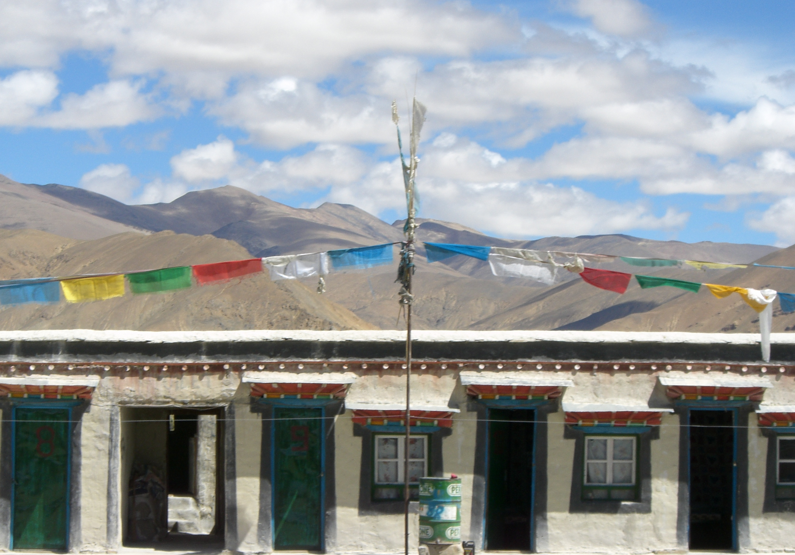 We decompressed at a rest-stop/food shack in the outpost town of Tingri (population: 520; elevation 4,300m/14,000ft+). Tingri is more or less the initial base camp for climbers setting off to the North Face of Everest which is about 60 km southwest from the town, or to Mt. Cho Oyu (6th largest peak in the world). It had one road running through it and traditional Tibetan buildings and homes sprinkled about on both sides. At the eastern end of the town, there was a PRC check-in point with a couple of red army staffers. Everyone in my tour group seemed to be suffering the effects of the high altitude. We had so far come down about 2,000ft from Lalunga pass. Faces were contorted with discomfort and unease. The A.M.S. spouting guy somehow bought a couple of O2 canisters from the shop owners. He inhaled them like he was doing whippets. I watched him out of fascination, but finally turned away and told myself that I only had a headache and it would subside. I had little appetite, but was able to eat a fried rice dish and drank a bottle of water. I then went outside to find the bathroom which was an incredible sight in and of itself. It was like entering an outdoor closet, but when you got inside there was nothing there to greet you except a rectangular stone slot that opened into a pit. I had used a few bush toilets in my time — some real classics — one of which had crossed my path 10 years earlier during a camping/safari trip through Tanzania. In that situation, the toilet itself was located in an unroofed, thatched space and there was some wooden urinal-esque device raised off the ground. But, this small concrete slot I looked at now threw me because of its utter flatness and because I was already struggling with my depth perception. I positioned myself about a foot or 2 near the slot — steadying myself for what was probably the most complicated act of urination in my life. I didn’t want to miss, stumble, or faint during the drainage. Let’s just say, I had mixed success.
