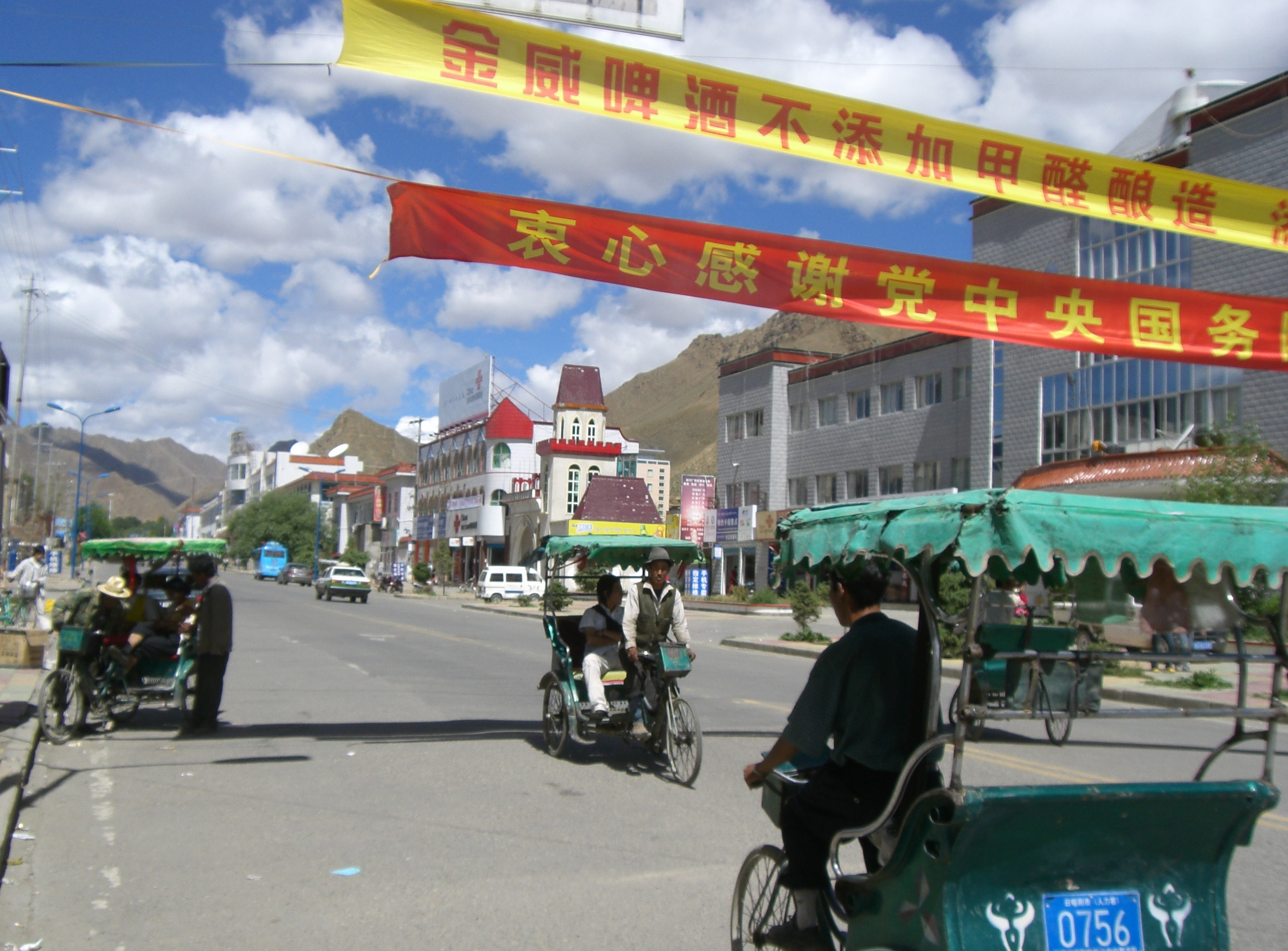As we entered the city, the first glimpse of the physical facelift of Tibet by the PRC occupation became clear. The infrastructure and look of the buildings was in stark contrast to what I had so far seen in Tibet. Admittedly, I had only been traveling through the remote southwestern corridors of the region, but if I had been plucked from Kathmandu and dropped into the main street in Xigatse, I would have thought I was in some small Chinatown of any country in the world. There was a generic feeling to everything. It was as if I was walking through the PRC’s version of Disneyland’s “Main Street, PRC”. Even the bicycle-rickshaws seemed fake. As we drove towards the hotel, I noticed a brand new looking white and red brick alabaster building on an outcrop overlooking the town. For a second I gasped. This couldn’t be what I thought it was because we were not in Lhasa. But, it looked very similar. Somehow my driver who didn’t speak English picked out the look on my face and through his broken English and my broken, phrase-book Tibetan I was able to learn that this building was a recreation of the “Dzong” (fortress) that used to be residential and governmental building the Panchen Lamas and citizenry used. The original building had been blown to smithereens in 1959 by the red army when China claimed Tibet. Now, nearly 50 years later, the PRC had recreated the building they destroyed — brick by brick — in order to establish it as another tourist attraction in Xigatse and charge 20 Yuans per head. It would never be on my list of my sights to see, but how strange it was to see the PRC rebuilding something that they had purposefully destroyed. Like any “liberators”, the PRC cut out the heart of the Tibetan people by going after and destroying most of their important monasteries, shrines, and spiritually significant buildings. They had to free the Tibetans from their backwards, Lama-worshipping lives. I saw a stone inscription in some monument that said something to the effect of: “The Tibetan People welcomed their reformation and re-education at the hands of their liberating brothers…” How many times have we heard that same old rubbish before? After we dropped our gear at the hotel, I took off by foot towards Tashilumpo. I bypassed the recreated Dzong which was an eyesore to me. A bunch of buses bringing in hundreds of Chinese tourists from the PRC whizzed by me. I would see these buses and Chinese tourists during the remainder of my travel in Tibet. I’m afraid to say these folks really got on my nerves as I will detail later.